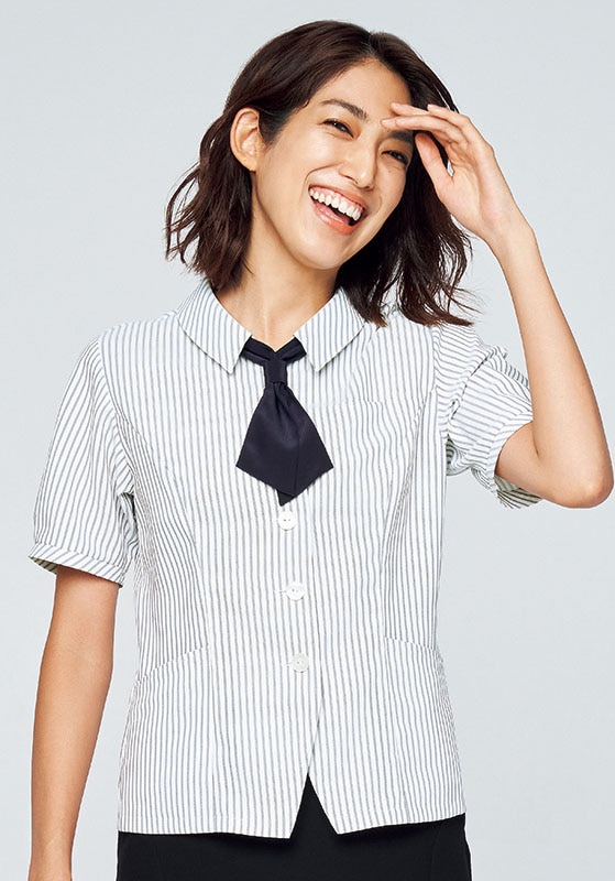 事務服 オーバーブラウス ESA836 エンジョイ サラクリアストライプ