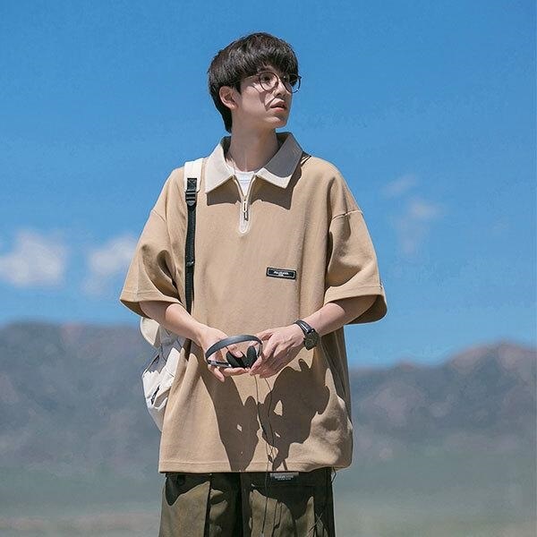メンズ ポロシャツ 3カラー 5サイズ ドロップショルダー 抜け感あり オーバーサイズ おしゃれ 清潔感 ハーフジップ こなれ感 ...