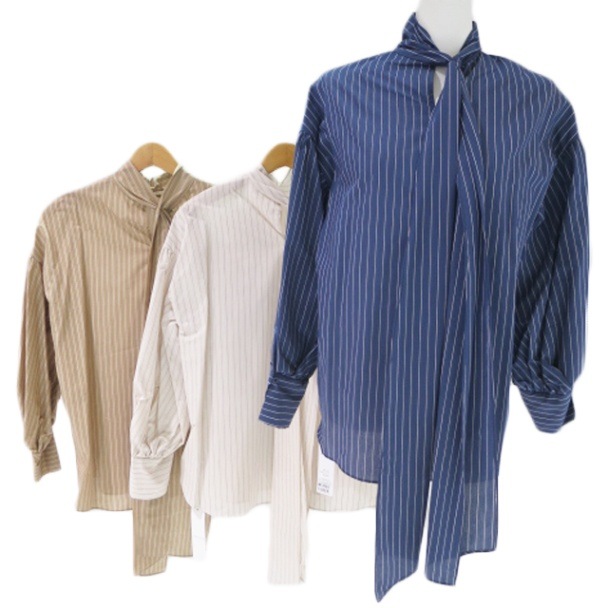 [50%OFF]COCO DEAL ストライプリボンハイネックブラウス