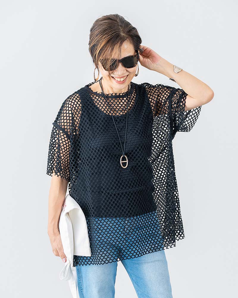 【YOKO ISHIBASHI】パイピングアクセントフィッシュネットプルオーバー