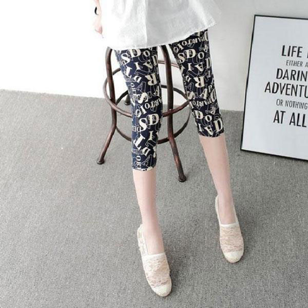 レディース レギンス 5分丈 総柄 プリント柄 韓国風 美脚 スキニー ウエストゴム ストレッチ素材 伸縮性 快適な履き心地 パン...
