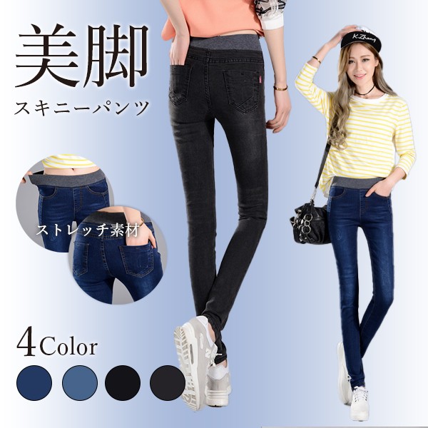 【セール】即納 安い レディース スキニーパンツ デニム ジーパン ジーンズ レッグパンツ ハイウエスト ロング丈 スリム 美脚 ...