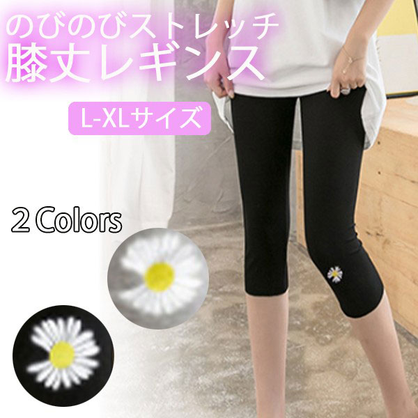 【セール】即納 安い レディース レギンス 膝丈 ワンポイント 花柄 刺繍 のびのび ストレッチ 生地 たるみ防止 履き心地 伸縮...
