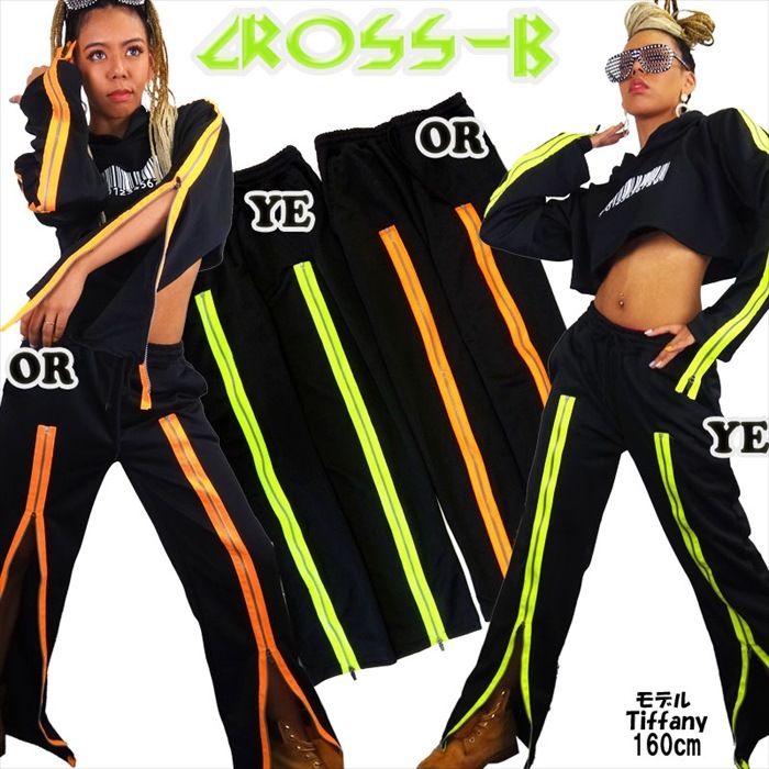 A0044-ネオンカラージッパー付ブラックロングパンツ