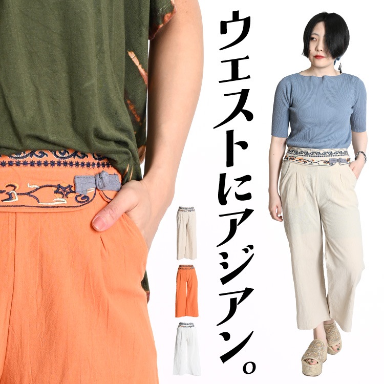 ワイドパンツ レディース きれいめ オシャレを格上げする。サイド刺繍ワイドパンツ 刺繍 ガウチョパンツ フレアパンツ ガウチョ パ...