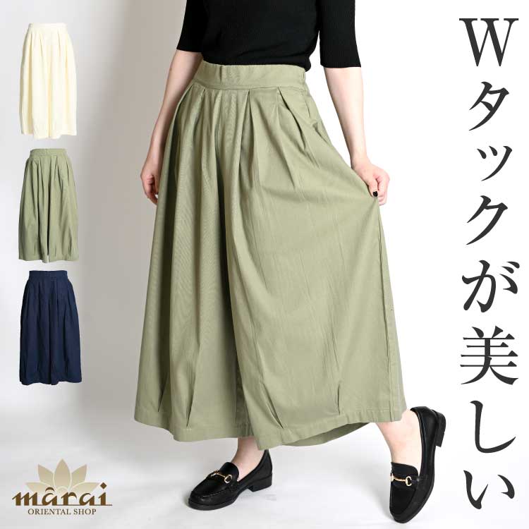 【期間限定10%OFF】ワイドパンツ レディース ガウチョパンツ タックパンツ ラック楽なタック入り。ワイドパンツ ワイド パンツ...