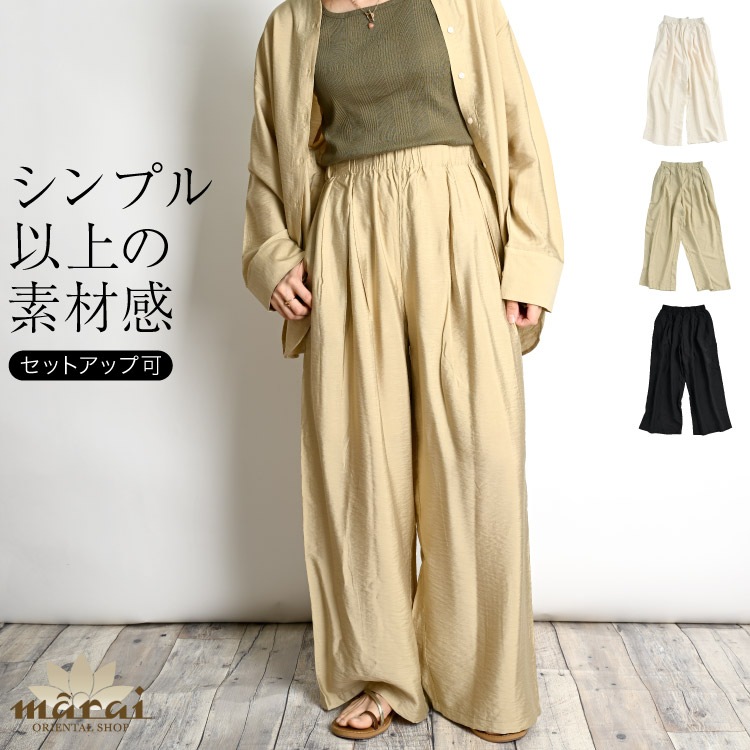 てろんと感 ロング丈 プリーツ ワイドパンツ スラックス