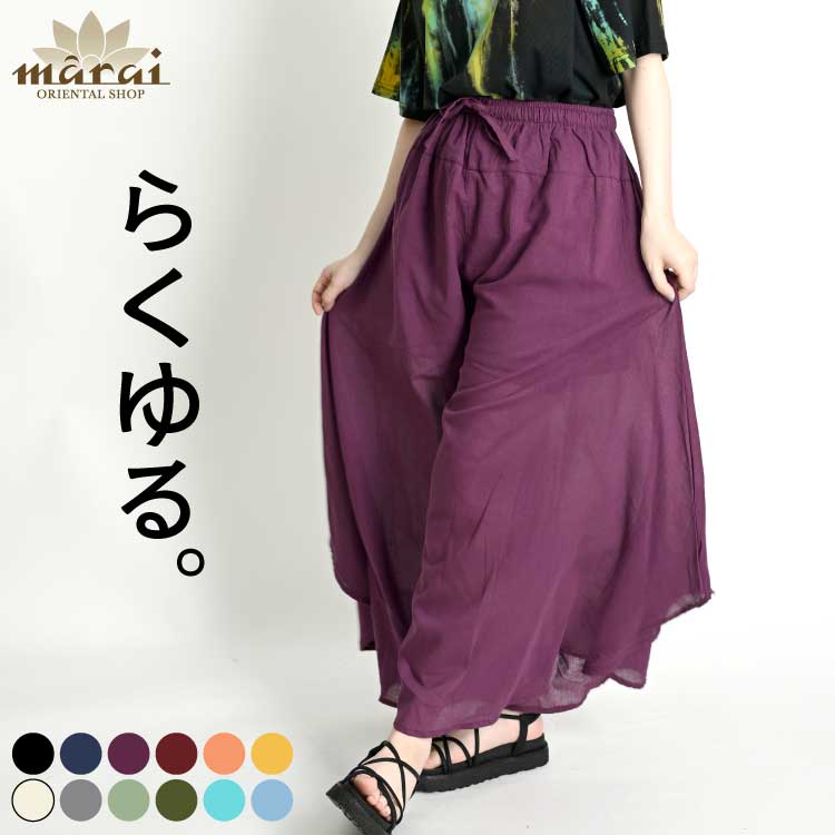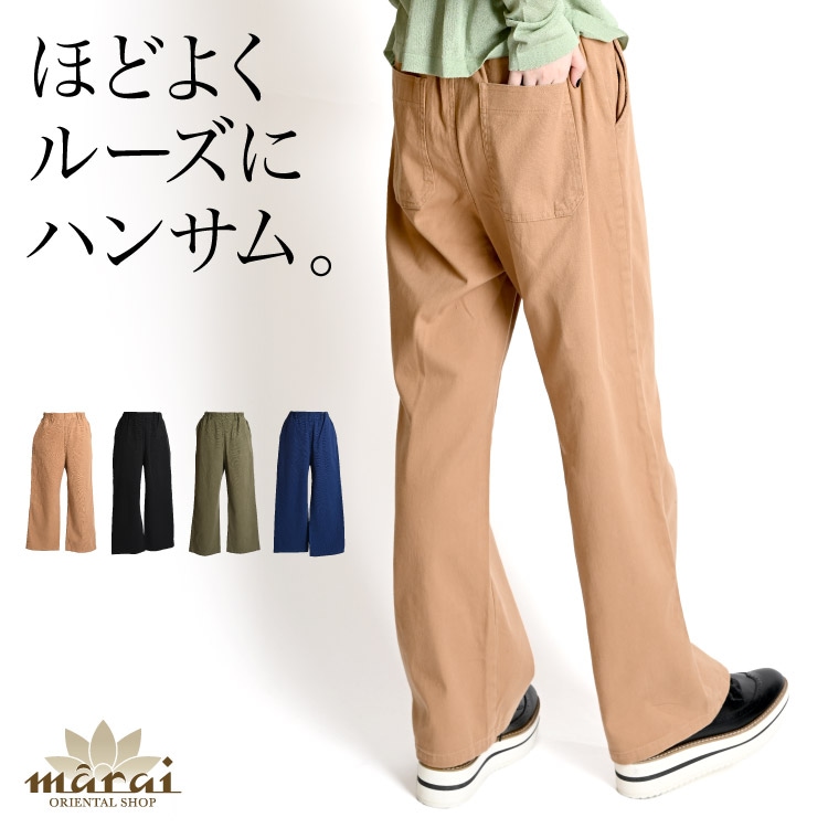 ゆるらくワイド。フレアワイドパンツ 【12色】ワイドパンツ ウエストゴム 綿100% カジュアル レディース ファッション フレア...