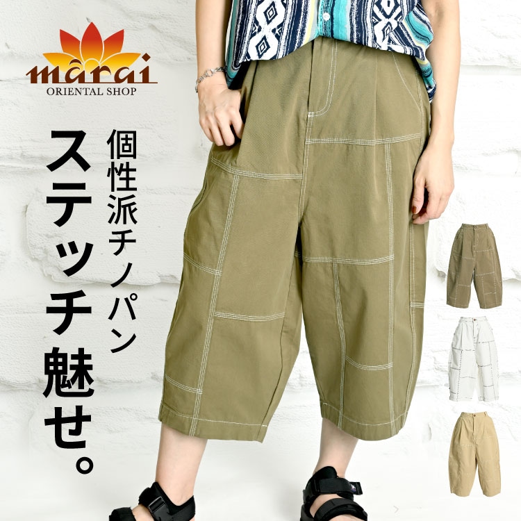【期間限定50%OFF】チノパンツ レディース クロップド ステッチラインが映える。パッチワーク風チノパンツ チノパン 春夏 カジ...