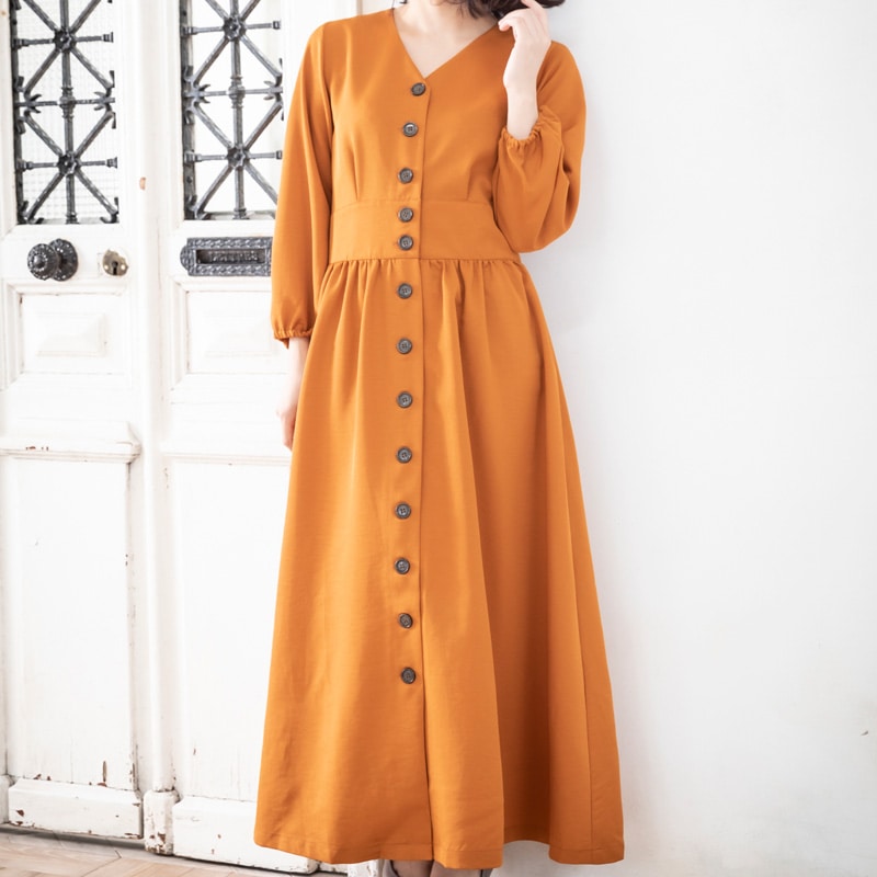 ぽわん袖 ゆったり コーデュロイ ロングワンピース