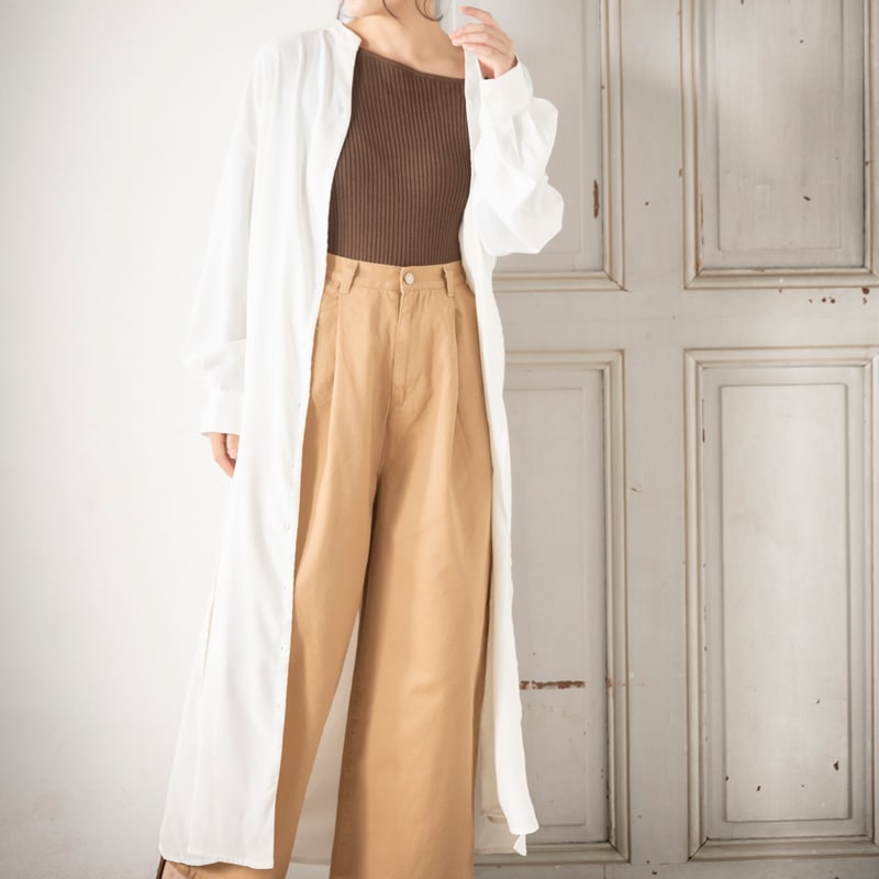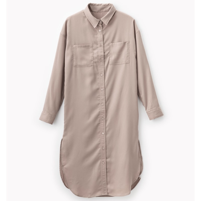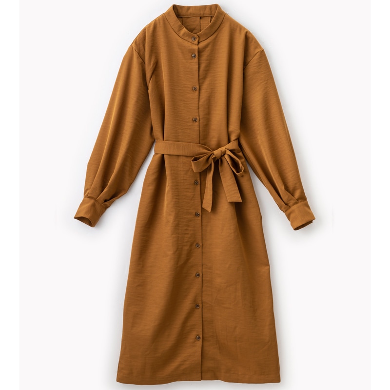てろんと感 リボンベルト付き ミモレ丈 シャツワンピース