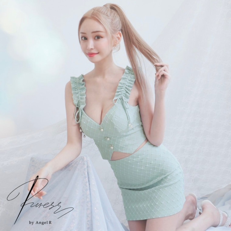再入荷 AngelR バストサイド スパンコール パールビジュー キャミ―ル タイト ミニドレス エンジェルアール AR233...
