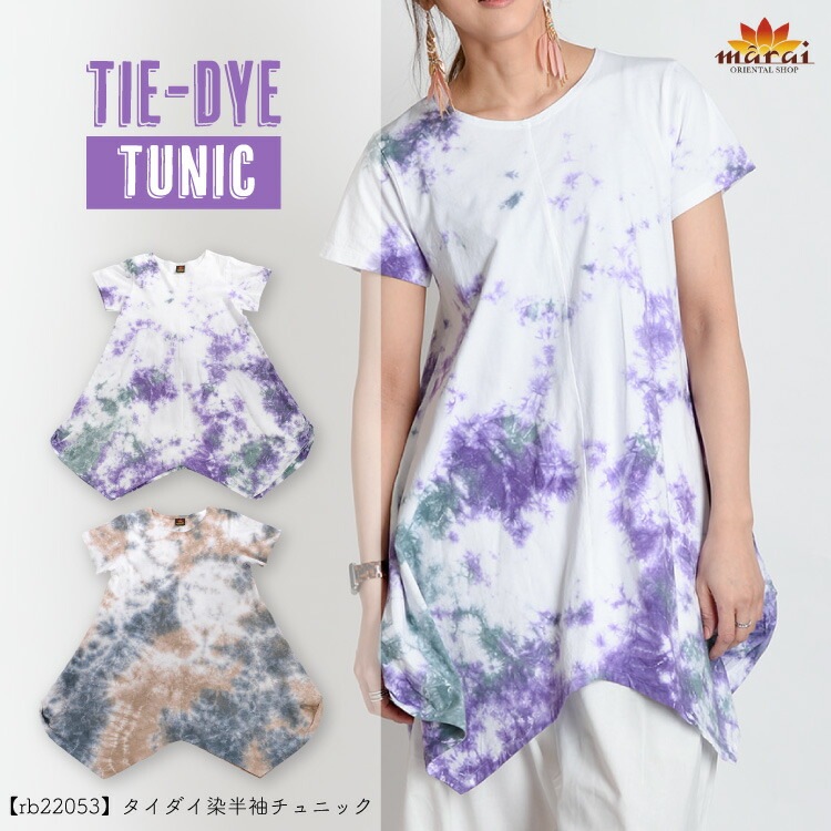 大人のためのタイダイ。タイダイ半袖チュニックワンピース