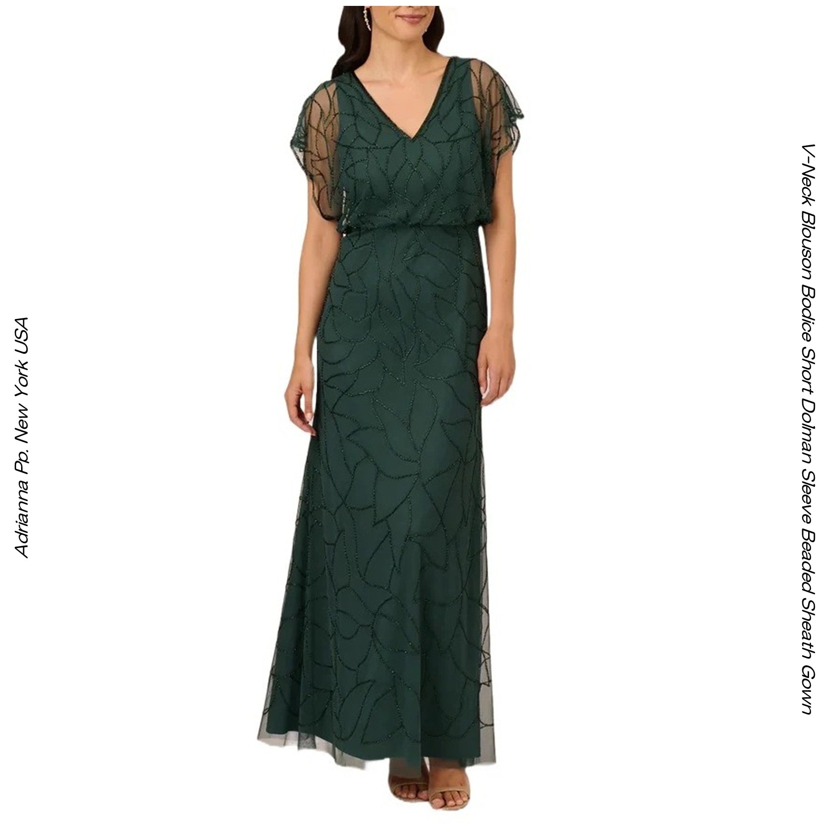 半袖ドレス マザーオフブライド シャンソン エメラルドグリーン 手差しビーズドレス ドルマンスリーブ ハンドメイドビジュ ニューヨ...