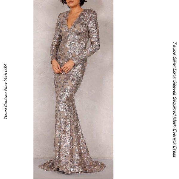 インポートドレス マーメイドドレス 袖付きドレス トープ色 メタリックエンブロイダリーレース マザーオフブライド 演奏会用ドレス ...