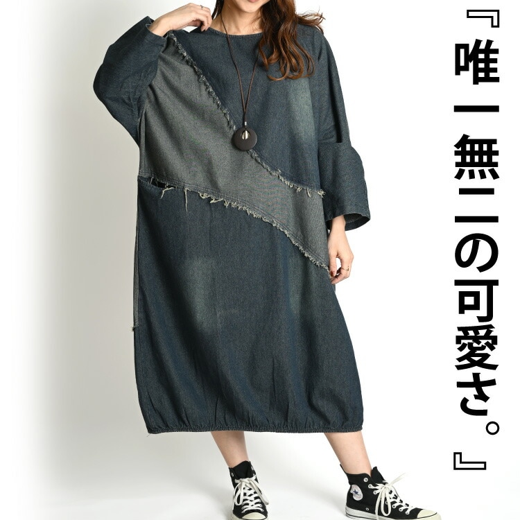 唯一無二の可愛さ。デニム長袖ワンピース デニムワンピース レディース 長袖 ロング デニム ワンピース ゆったり 大きいサイズ ロ...