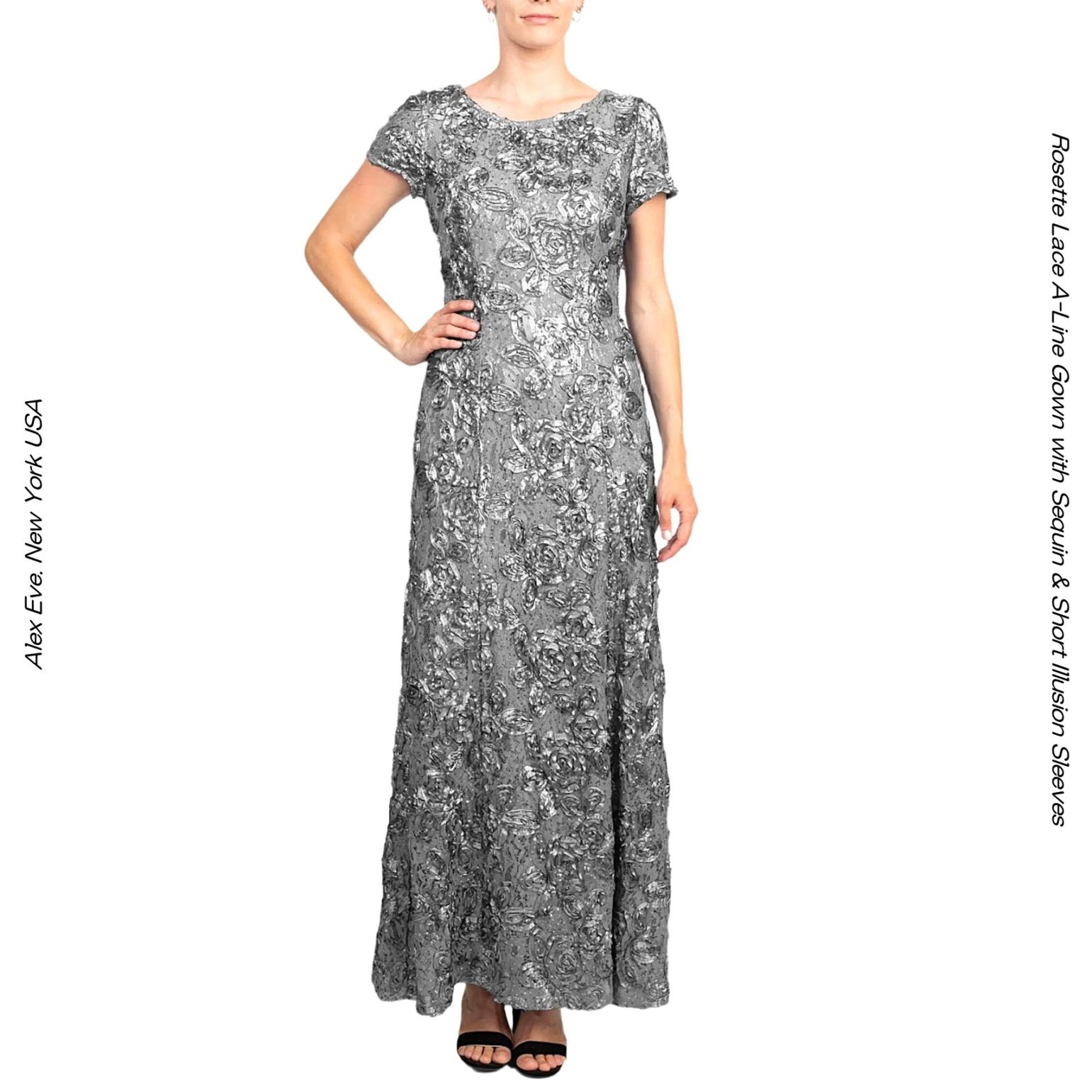 インポートドレス 声楽 ピアノ演奏会ドレス 発表会ドレス ロゼットレース ドーブシルバー キャップスリーブ マザーズドレス イブニ...