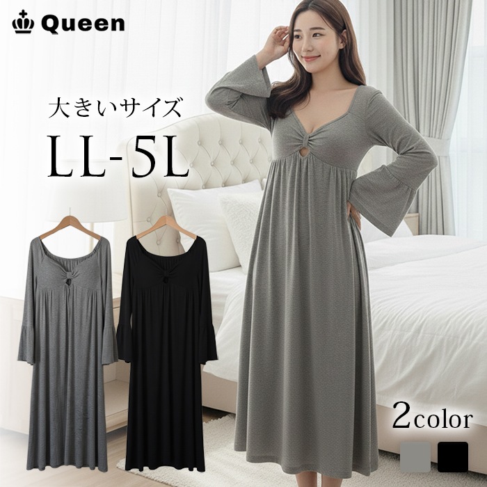 胸元リボンモチーフルームワンピース 大きいサイズ レディース Queen (h1559)