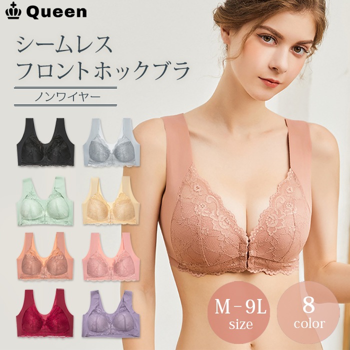 フロントホックシームレスブラ(花柄レース) (thm02)