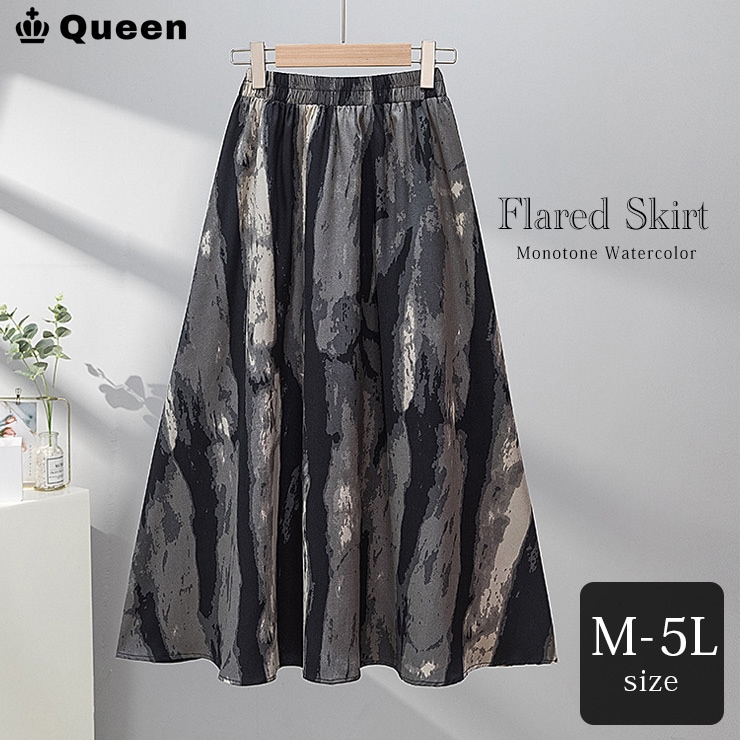 大きいサイズ レディース フレアスカート ミモレ丈 ニュアンス柄 迷彩柄 ウエストゴム 春夏 秋 M L LL 3L 4L 5L ...