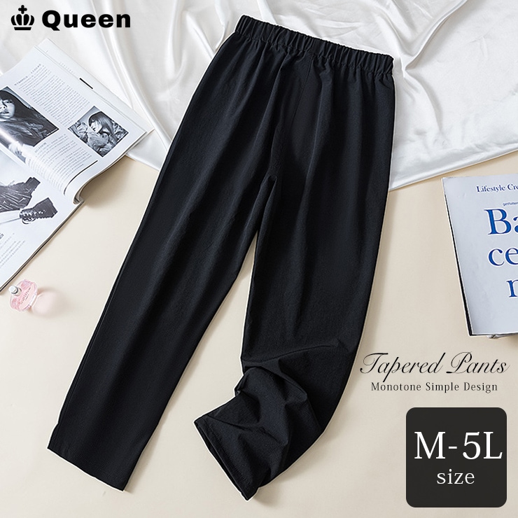 大きいサイズ レディース テーパードパンツ 黒パンツ クロップド 8分丈 ウエストゴム 春夏 秋 M L LL 3L 4L 5L ...