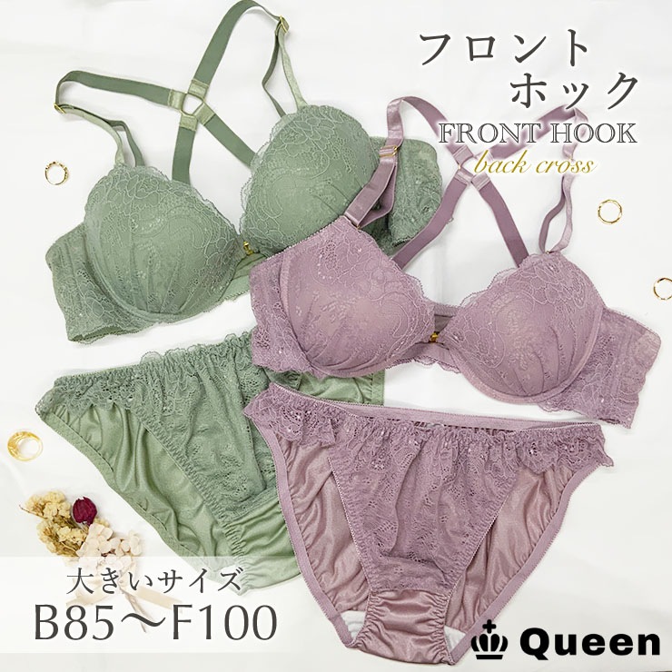 大きいサイズ ブラジャー フロントホックブラ ショーツセット くすみカラー レディース 下着 無地 レース (nf3591-1)