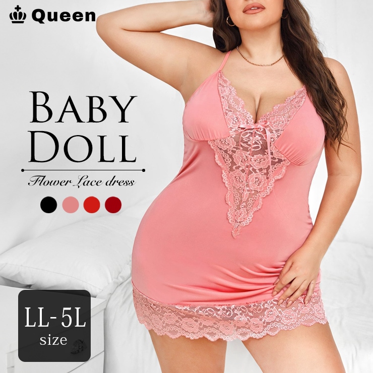 大きいサイズ ベビードール セクシーランジェリー レディース 下着 スリップ ナイトウェア ショーツセット LL 3L 4L 5L...