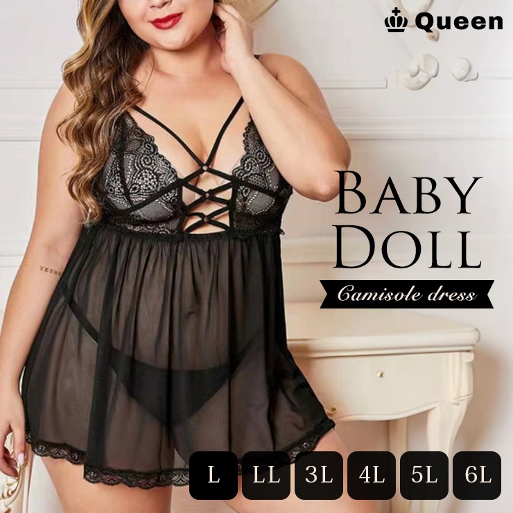 ベビードール 大きいサイズ セクシーランジェリー 下着 ナイトウェア Tバック ショーツ付き インナー レディース LL 3L 4...