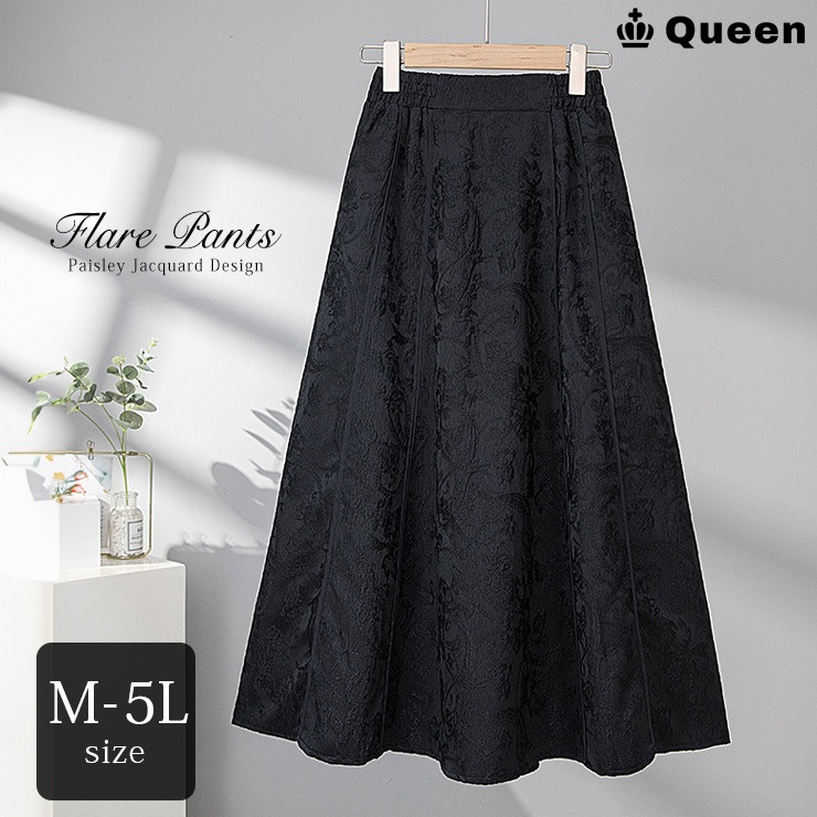 大きいサイズ レディース フレアスカート 黒 Aライン ゴアードスカート ジャガード ミモレ丈 春 秋 M L LL 3L 4L ...