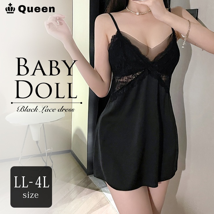 大きいサイズ レディース ベビードール スリップ 下着 ナイトウェア キャミワンピ 黒レース L LL 3L 4L 5L 6L (...