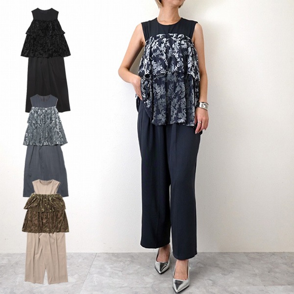 【送料無料】レース切り替えセットアップパンツドレス