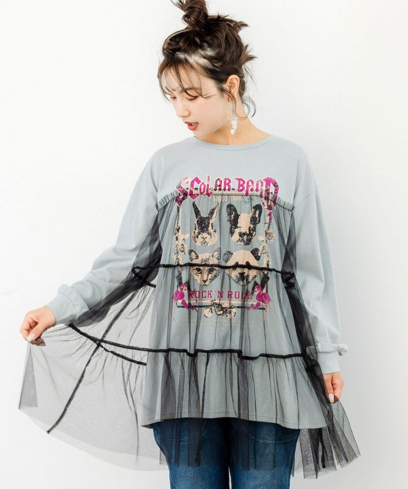 スカラー / ロックなアニマル柄 チュール重ねチュニック