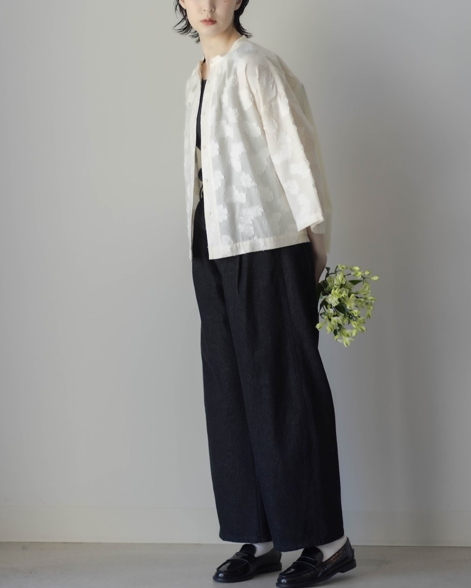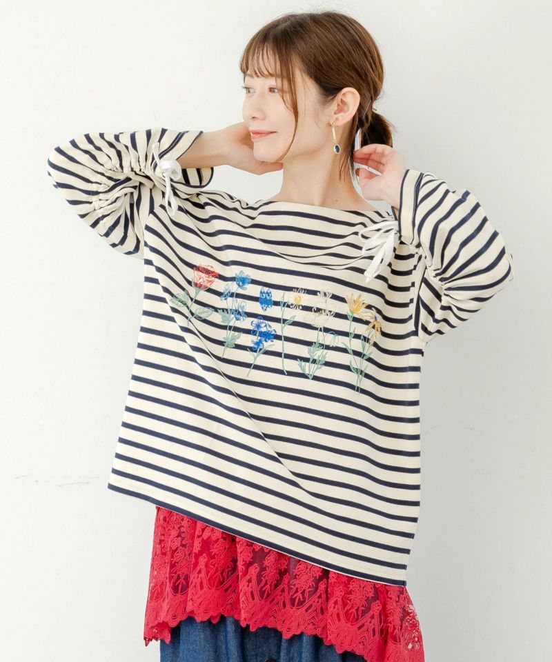 イズスカラー / 花刺繍ボーダー 袖シャーリング2WAYロングスリーブTシャツ