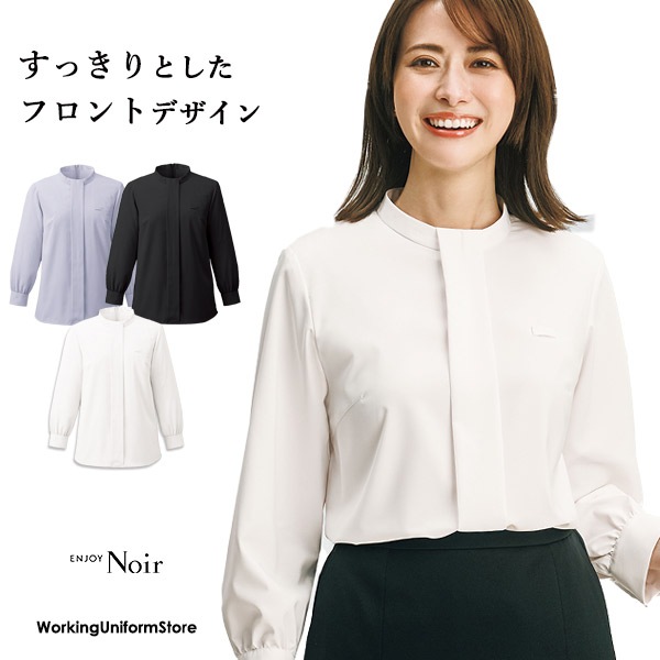 ノワール 八分袖スタンドカラーブラウス EWB945 シルキーファイユ エンジョイ事務服