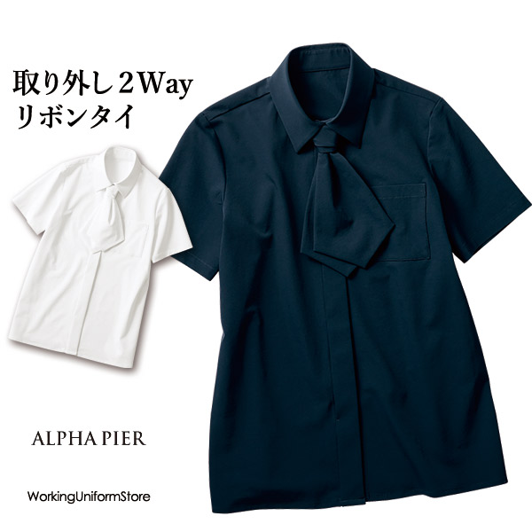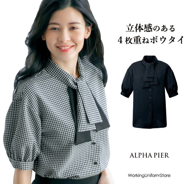 鳥居ユキ仕事服 リボンタイブラウス YT1728 ストレッチワッシャー アルファピア