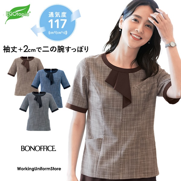 ボンオフィス事務服 五分袖プルオーバー BCD8704 リファインチェック【エコ&抗菌防臭裏地】