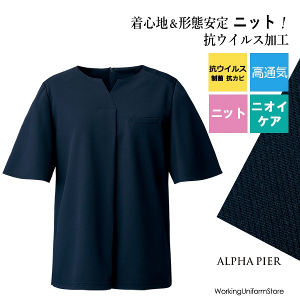 【抗ウイルス/高通気ニット】事務服プルオーバー AR7612 アルファピア コンフォータブルニット