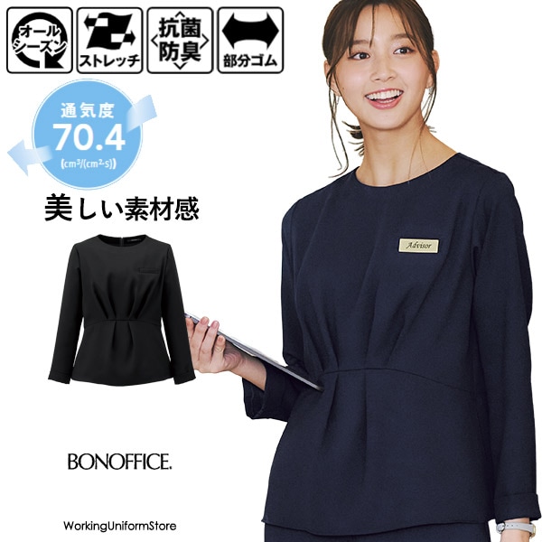 通勤服 接客 七分袖プルオーバー BCD8703 ボンオフィス グロッシーオットマン