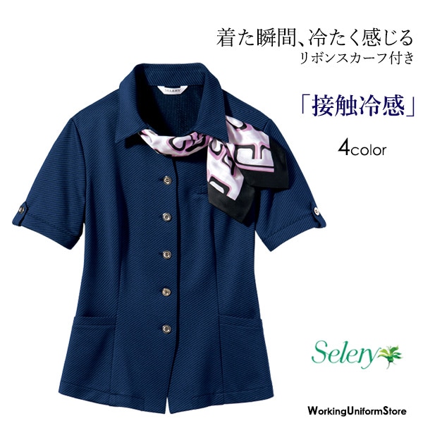 事務服 ブラウス オーバーブラウス 半袖 S-50120 S-50121 セロリー エアフロートソアロン