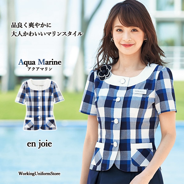 事務服 受付 オーバーブラウス 春夏ソフトジャケット 26610 マリンブルーチェック アンジョア