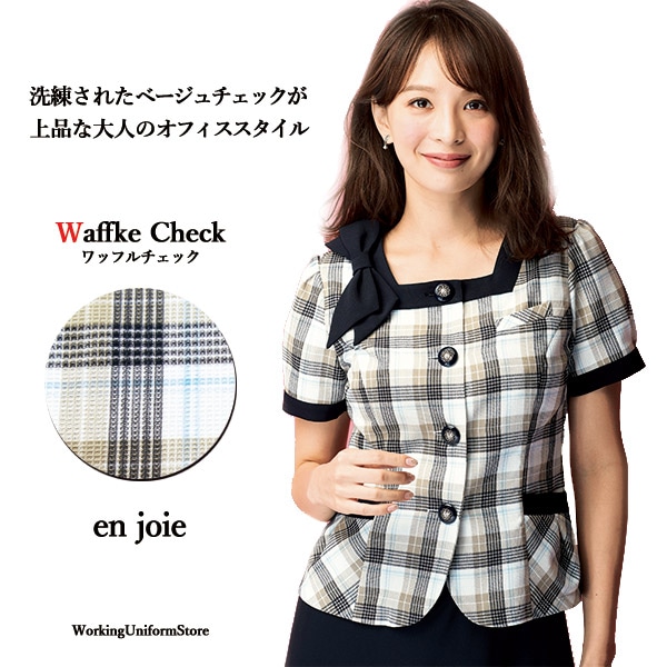 事務服 春夏 オーバーブラウス 26660 ワッフルチェック アンジョア
