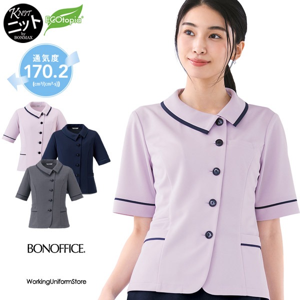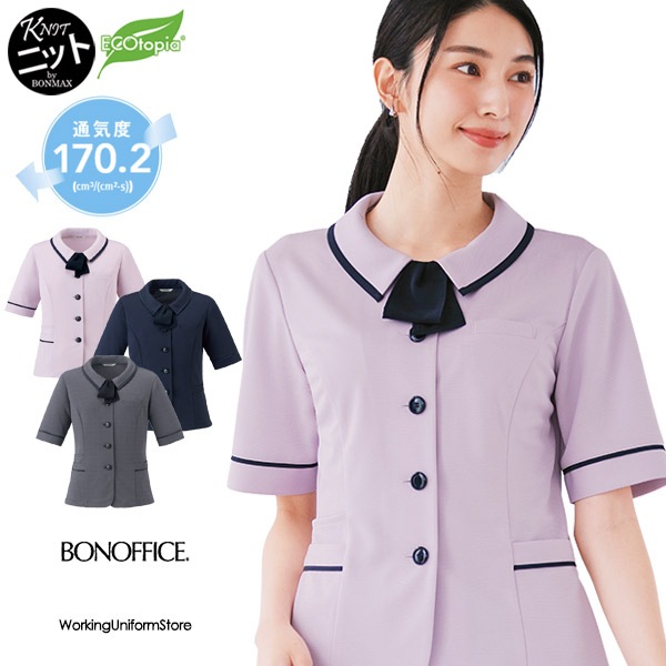 ボンオフィス事務服 オーバーブラウス AJ0860 モイステックスボーダー