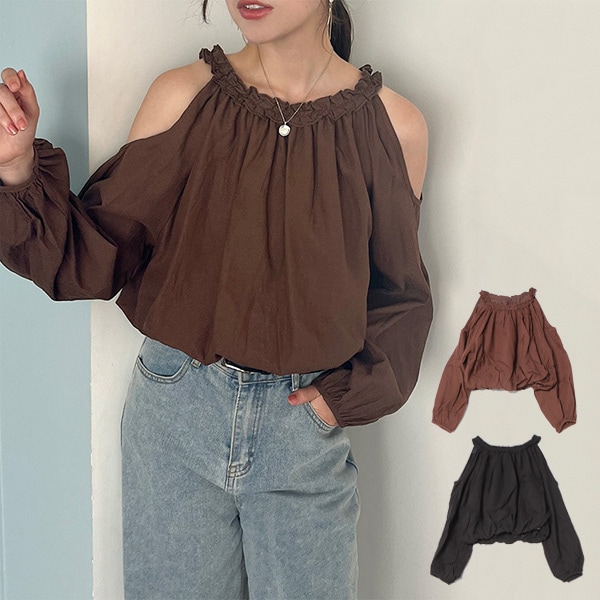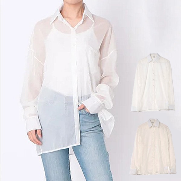 シアーシャイニーポプリンボリュームスリーブシャツ