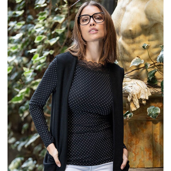 イタリアインポートカットソー COTONELLA GD350 レース切替ドット柄コットンカットソー 黒