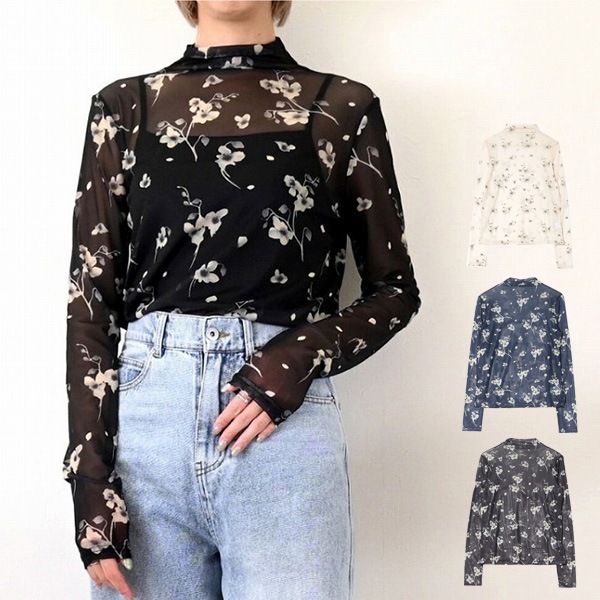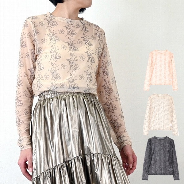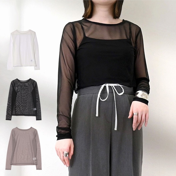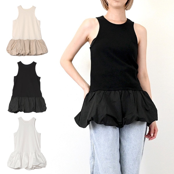 ワイドリブ×オーガンジー2WAYフリルトップス