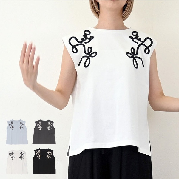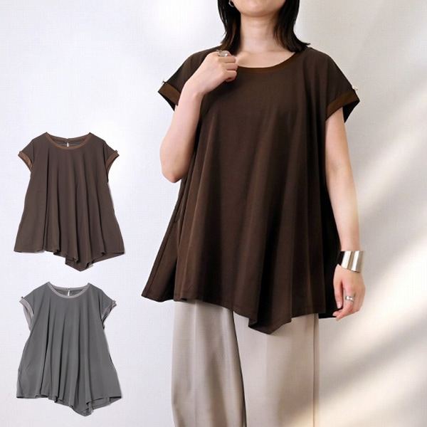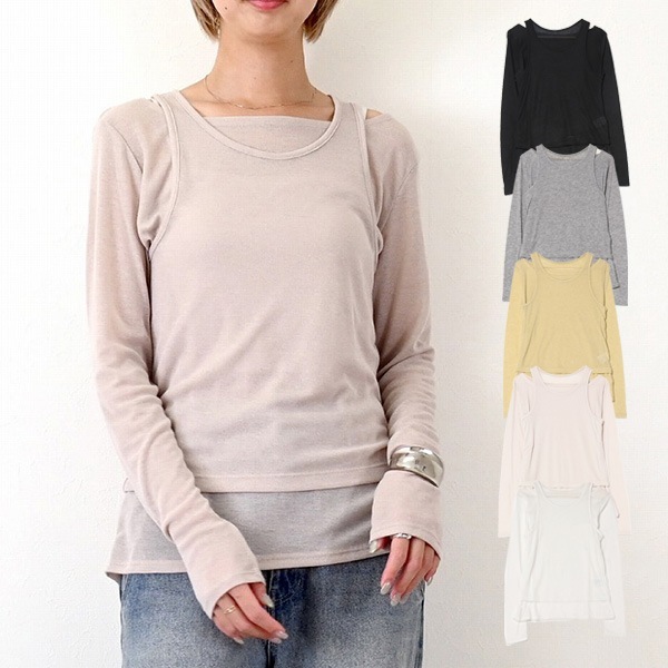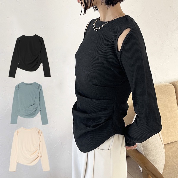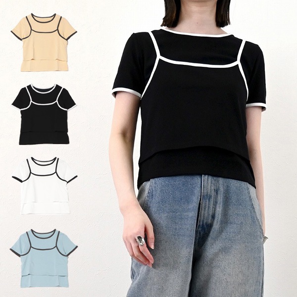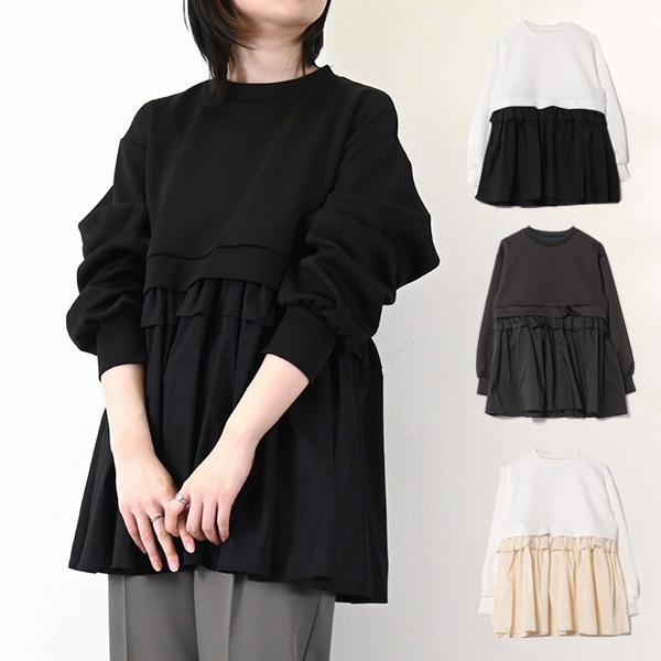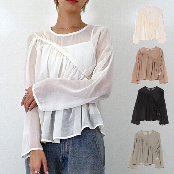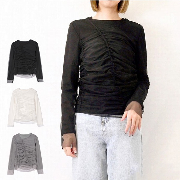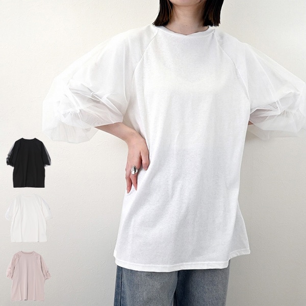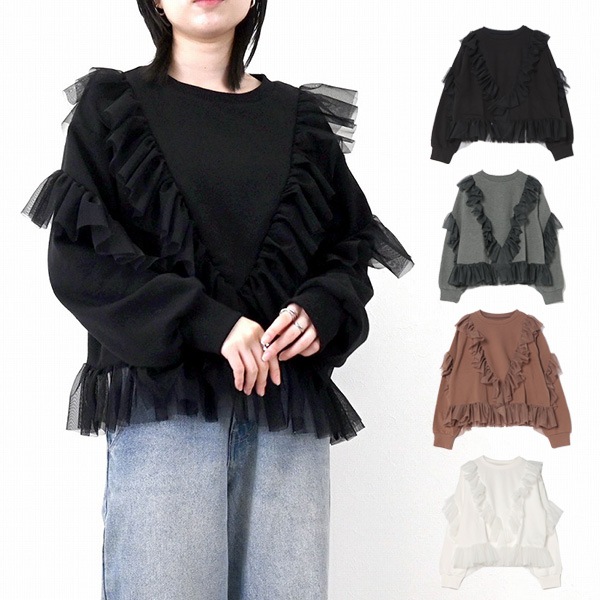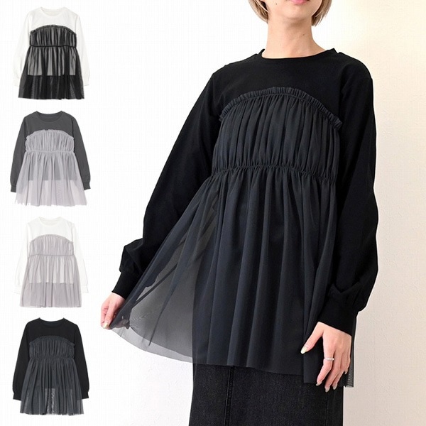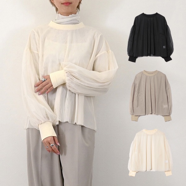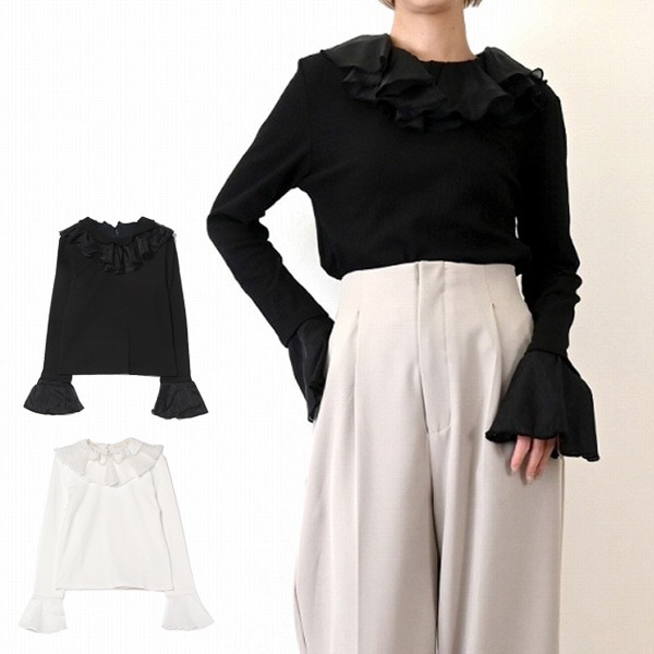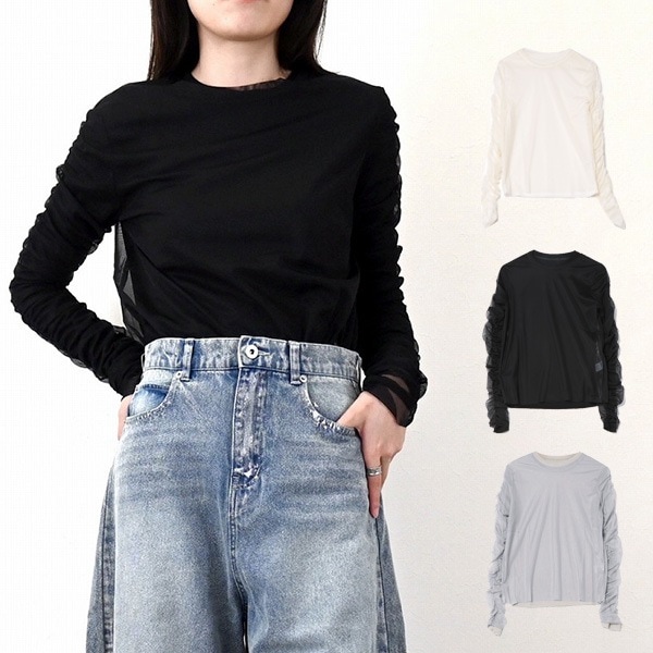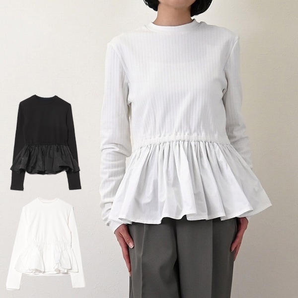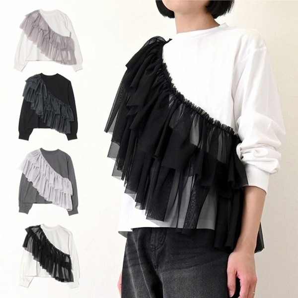ワイドリブ×オーガンジー2WAYフリルトップス