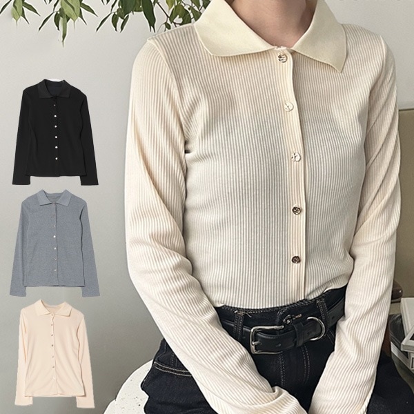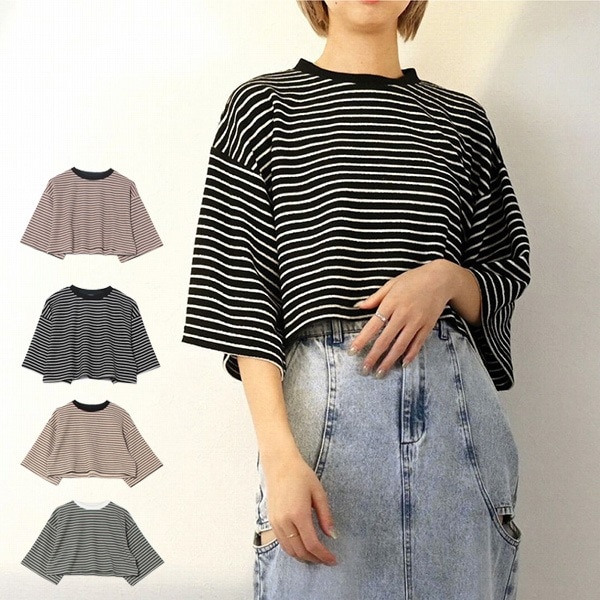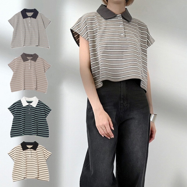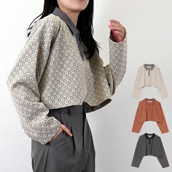 花柄ジャガードカットソーポロカラークロップドプルオーバー