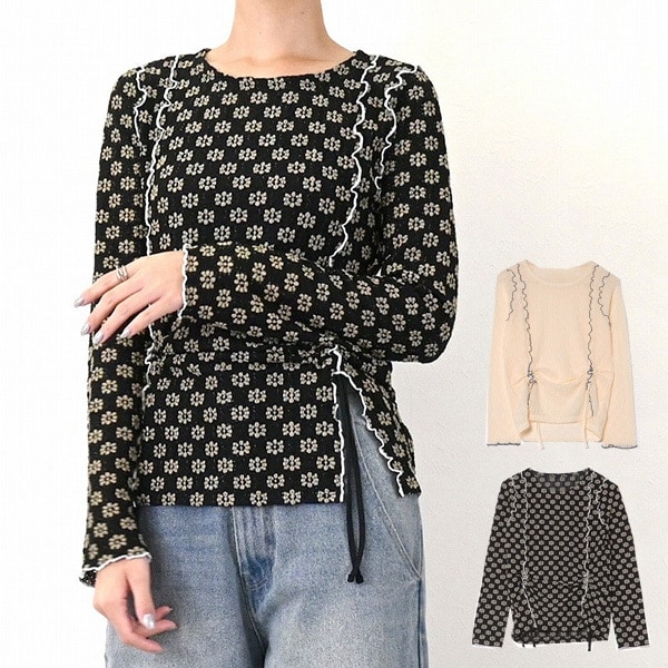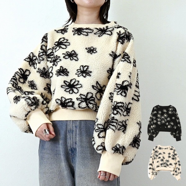 花柄ふくれジャガードカットソーラグランプルオーバー