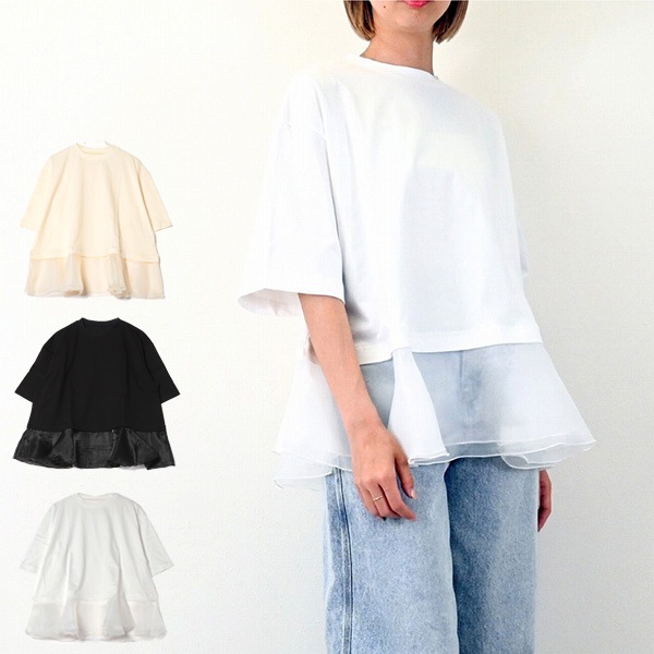 チュールシャーリングプルオーバー×リブプルオーバーセット