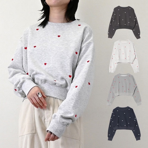 花柄ふくれジャガードカットソークロップドプルオーバー